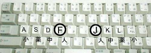 ただし, 人指し指だけは, となりと合わせて6つのキーを受け持つ
